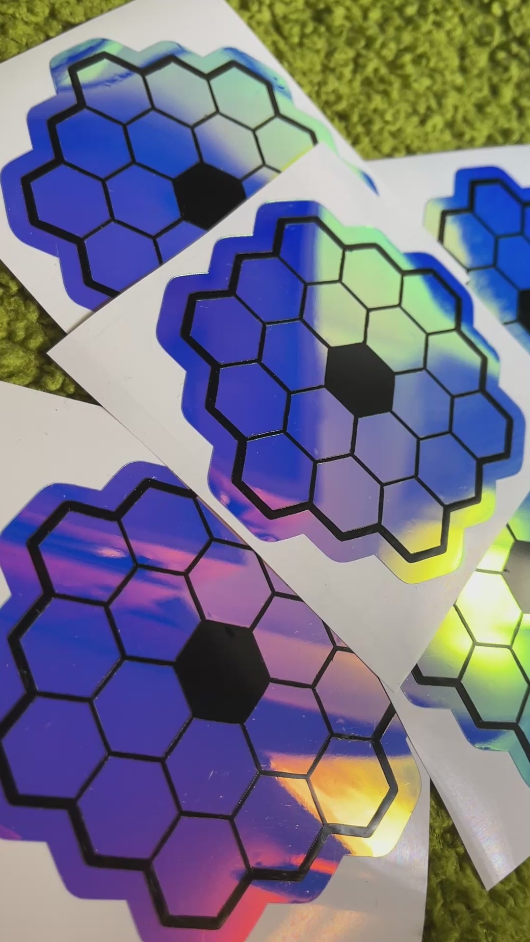 Holographic colors changing from Blue, green, pink, orange, to yellow at different angles